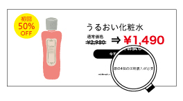 手法:「初回限定価格」と表示されていても、実は定期購入が条件になっている。