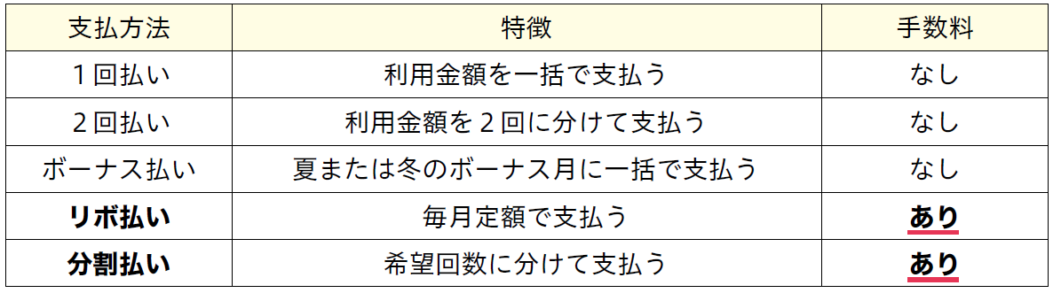 クレジットカードにはいくつかの支払い方法があります。それぞれの特徴や手数料が異なるため、仕組みを理解して選ぶことが大切です。
