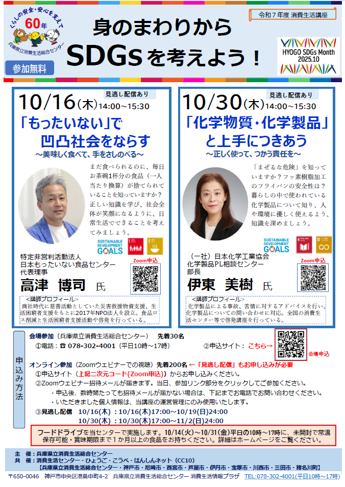 会場参加の申し込み・お問い合わせは兵庫県立消費生活総合センター 消費生活情報プラザまで。